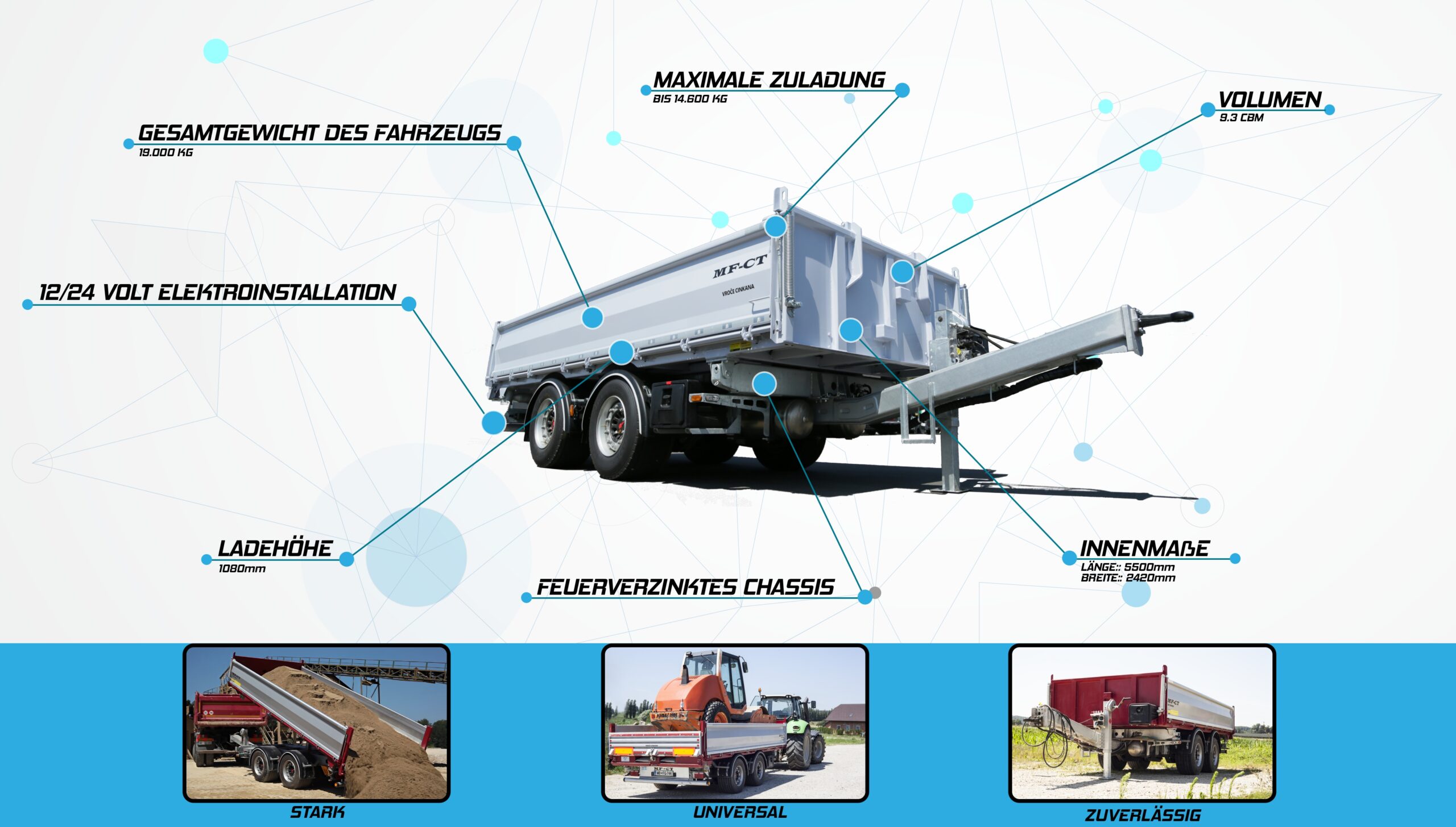 Die Elektroinstallation am Anhänger ist für den Anhängerbetrieb mit LKW oder Traktor geeignet (12/24V).