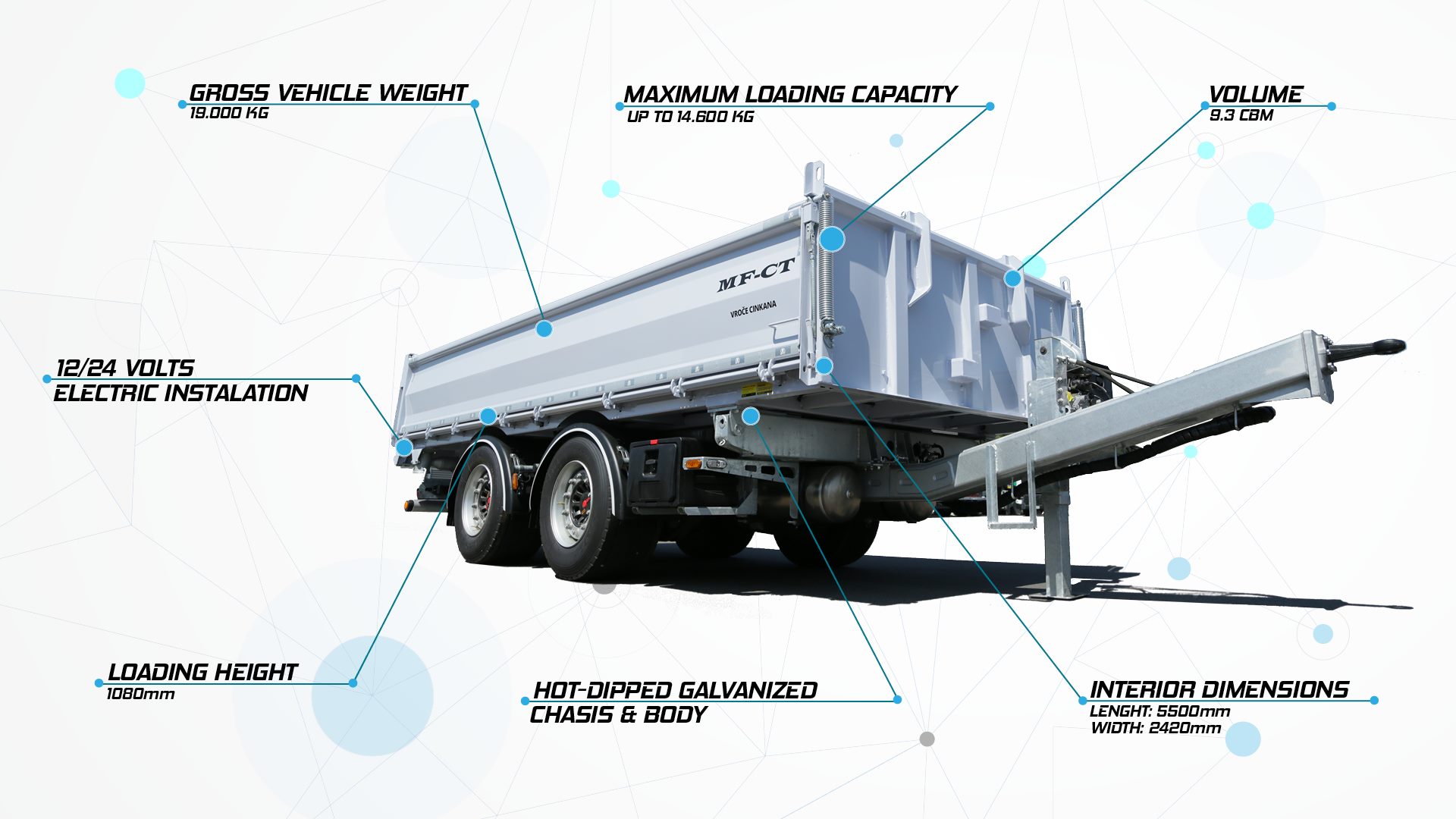 Tow the trailer with a Tractor or Truck, thanks to a 12/24V electricity option.